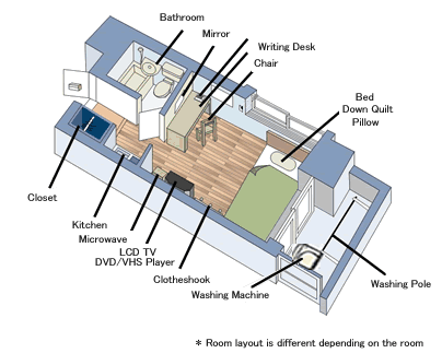 | Cleaning Cost | JPY 935/day | JPY 650/day JPY 19,500/month | JPY 350/day JPY 10,500/month | JPY 200/day JPY 6,000/month |